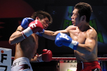 第5試合 一回戦(4) 3分3R(延長1R) ×ファイヤー原田(レグルス池袋/J-NETライト級5位) ○水谷秀樹(スクランブル渋谷/R.I.S.E. DoA '05 3位) 判定0-3 (小川29-30/秋谷28-29/大澤28-29)