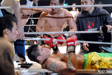 第5試合 総合ルール 73kg契約 5分2R ○雷暗 暴(アメリカ/雷道場) ×ヘンリ・カキウチ・ヴォルベリン(ブラジル/ハードコンバット) 1R 1'20" TKO (タオル投入:グラウンドパンチ)