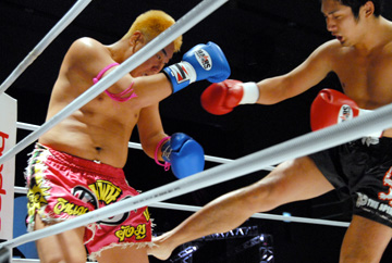 2R、コウイチが右ローを効かせた後、残り30秒にダウンを奪取。3Rもパンチを当て続け攻勢を維持し完勝した。