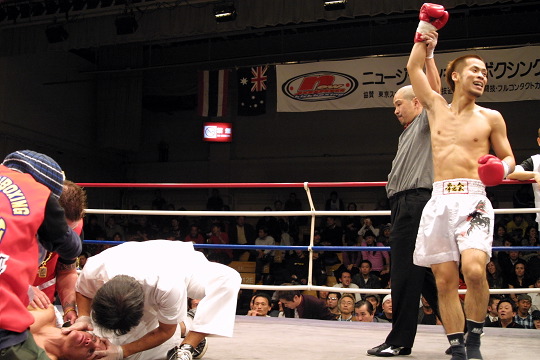 5戦全勝・2006年度最優秀新人賞の赤十字がついに初黒星。長崎のボディブローを軸にした攻めに手を焼き、得意の右ローを効かせることができない。4R、右ストレートを当てチャンスを作ったかに思ったが、直後の右ストレートでダウン。バックブロー等を返すも、点差を埋められなかった。