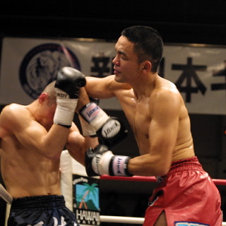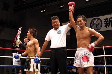 1Rから松本がジャブでリズムを作り、左の蹴りを上下に打ち分けつつ、右ストレートで阿佐美をぐらつかせる等主導権。2Rにはパンチと肘のラッシュで阿佐美の頭頂部を切り裂くと、ドクターチェックの後に飛び膝と右ストレートをクリーンヒットさせ、見事返り討ちに成功した。 松本は試合後マイクを持つと「今年の藤本ジムのテーマは挑戦です。4月のTITANSで、ラジャダムナンスタジアム・ミドル級王者のラムソンクラームとやらせてください」とアピールした。 松本は03年7月、ラムソンクラームを1R KOしたが、その後ラムソンクラームは急成長。05年5月にタイで松本はラムソンクラームの持つラジャ王座に挑戦するも判定で敗れている。