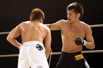 (菊地と対峙してみて)一番感じたのは体格差。普段は向こうが80kgから落としてきて、こっちは普段でも75〜6ぐらいですからね。73の選手が上の選手とやっても、自分が勝つということですね。 (菊地の上からのパウンドは?)まったくいいパウンドもらっていななかったんですけどね。パウンドしてきたら腕取ってやるよという感じでした。(一本取れなかった原因は?)殺気ですね。相手の腕を折ろう、殺そうというのがなかった。これからは殺気のあるサブミッションを狙いたいです。(途中のローブローは?)勝つ手立てがあのくらいしかなかったんじゃないですかね?向こうが手詰まりだったなというのは感じました。 (今回1年ぶりの再戦だったが?)また?という感じで特に興奮もしませんでした。もっとワクワクする試合がしたいです。前回のハンセン戦。一度計画されたメレンデス戦。武士道でのジェイソン・ブラック戦、クレイ・フレンチ戦のような、お客さんが見て興奮する、夢のある試合がしたいです。 (これからの修斗の試合は?)2年連続で同じ試合で、ミドル級で他に見たいカードあります? 1年経って他の選手が育ってワクワクするようなカードがあればいいですけどね。(判定が割れたことについては?)全くもって意味わかりませんね。自分がキャッチも取っていたし、これについては少し腹が立っています」