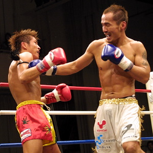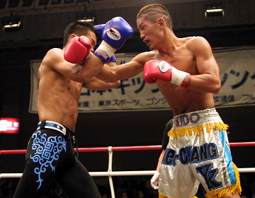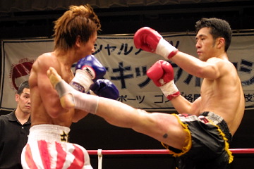 第12試合 交流戦 肘無し 70kg契約 3分5R ○城戸康裕(谷山ジム/MA日本ミドル級王者) ×宍戸大樹(SB・シーザージム/SB日本ウェルター級王者) 判定3-0 (小林50-48/梅沢49-47/少50-47) ※2R右膝蹴りで宍戸に1ダウン