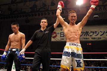 1年前の対決でKO勝ちしている水町が、今回もTKO勝ちという記録を残したが、危ない場面が2度あった。1R、ローとフックで手数多く攻めたが、終了間際の笹谷の肘で左目尻をカット。2Rはローを受けた後の左ハイキックで一瞬グラリとくる。 だが直後、得意の飛び膝で笹谷をひるませると、パンチの連打でダウンを奪取。さらに飛び膝で2度目のダウンを奪う。笹谷はかろうじて立ち上がったが、危険と見た師匠の橋本敏彦会長がタオルを投げた。
