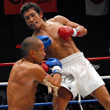 ◆石川「(試合の感想は?)あまりないです。見ての通り。10月に2つ勝つ事を約束します。…ちょっとだけ話すと(苦笑)、1・2Rは自分のペースが取れました。でも、カットがあって『止める可能性がある』と言われて消極的になってしまった。情けないです。心を鍛えなおしてきます。あとは全日本の選手が全員残ったのが嬉しいです。(村浜の印象は?)パンチがあんなに軽いとは思いませんでした。あと、組んだ時に頭押し付けられのが嫌でしたね。打たれ強いとも思いました。単調な攻撃では、相手倒れないんですね。倒そうとしないでいると倒せる。それでああいう結果になったんだと思います。(次は山本真弘だが?)今日の内容を見ると、決勝は藤原ジム同士になってしまいますね。それは阻止しないと。」