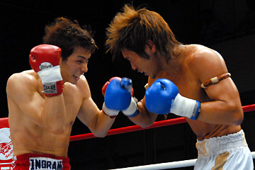 第4試合 セミファイナル 全日本フェザー級ランキング戦 サドンデスマッチ(3分3R+延長1R) ×岩切博史(月心会/4位) ○上松大輔(チームドラゴン/5位) 3R 判定0-3 (朝武29-30/梅木29-30/和田29-30)