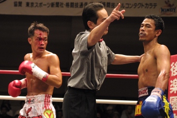笛吹が左フック、左ボディ、左ジャブ、健太は右フックと右ローで攻める一進一退の展開。健太は右目の周りを腫らすが、4Rには縦肘で笛吹の額を切る。5Rには笛吹が右フックでたびたび健太をぐらつかせる。 判定は三者三様でドローとなり、笛吹が防衛に成功。「不本意ですね」と話したが、得意のパンチ中心の攻防に誘い込み「自分のペースでやれた。かなり冷静に戦えた」と内容にはある程度満足した様子だった。5回戦の経験の少ない健太との差が出た試合でもあった。体力面でも「まだまだいける」と自信。37歳・選手キャリア13年の王者の戦いはまだ続く。