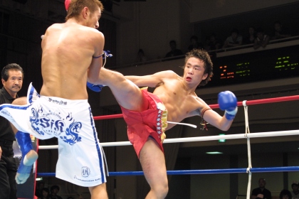 タカが腰の入った右ローを効かせた後、2Rに右ストレートでダウンを奪取。3Rには北山も左のテンカオをきっかけに盛り返したが、タカが逃げ切り、他団体王者撃破に成功した。