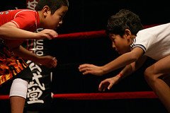 第4試合 キックルール 68kg契約 3分3R △古澤道隆(NEX) △柘植崇之(GSB) 時間切れ 187cmという長身で、さらに手足の長い古澤が、柘植の動きをうかがいながらローで攻め立てる。柘植はそのローに苦しみながらも飛び込んでのフックで打開を図る。柘植が古澤をコーナーやロープに追い込むと、古澤は途端に動きが固くなり、柘植はそこにつけ込む。 2R、3Rと柘植のローが古澤の動きを徐々に低下させると、スタミナが無くなったにも関わらず古澤は必死の反撃。しかし、終始自分のペースと間合いをキープした柘植がそのまま有利に試合を展開。3R終了のゴングが鳴ると規定により引き分けに終わった。