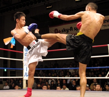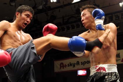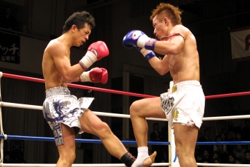 2Rまで互いにローの打ち合い主体の攻防。3R序盤、古谷が得意の右フックでダウンを奪取するが、これで火のついた牧は膝蹴りで猛反撃。古谷は全くと言っていいほど首相撲に対処できず防戦一方に。牧は3Rの失点を2から1に減らすことに成功する。4Rも牧が膝と右ストレートで圧倒。5Rこそ古谷に肘で額を切られたものの、王座を死守した。