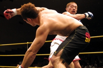 1R後半、両者のスタンドでの殴り合いが続き、終了のゴングの間際に北崎の右フックで井上がダウン。ダメージが大きく、ドクターの判断も加わり、2R開始直前に井上陣営からタオルが投入された。