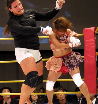 第5試合 無差別級 5分2R ×藪下めぐみ(フリー/元スマックガール無差別級女王/58kg) ○ラナ・ステファニック(米国/レディース・オブ・ペイン/109.0kg) 判定0-3 (和田=ステファニック/芹澤=ステファニック/山崎=ステファニック)
