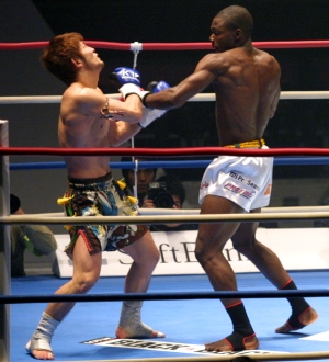 第7試合 準決勝(1) 3分3R(延長1R) ×アンディ・オロゴン(ナイジェリア/チーム・オロゴン) ○城戸康裕(谷山ジム/MA日本ミドル級王者) 判定0-3 (朝武29-30/御座岡29-30/大成29-30)