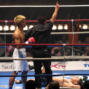 ◆谷川貞治FEG代表「城戸選手は身体能力が高く小比類巻選手の再来のようなタイプ。優勝はおめでとうといいたいけど、決勝以外の戦い方には課題が残りましたね。やっぱり一日3試合はキツいですね。HAYATO選手も最後はフラフラでしたし。今日の(MAXの)MVPは前田宏行選手。開幕戦の日本人は魔裟斗、佐藤、城戸の3人で、他はエントリーしません」