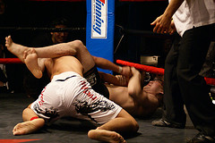 1R、跳び付き十字で吉川がいきなり試合を決めにかかるがこれは極まらない。吉川が2度タックルを試みるがどちらも切られると、また跳び付き十字。これも日置がしのぐが、吉川は下から立ち上がってパスしサイドへ。腕十字を狙う吉川だが、日置が動き安定させられず、逆に足を持たれたまま立ち上がられる。吉川もカウンターでフロントチョークをかけるがコーナーに押し込まれる。吉川はチョークを外しながらも余裕なのか不敵な笑みを浮かべる。コーナーでもつれ合ったまま、日置は変形アームロックを強引にかけて行くが1R終了。 2R、吉川がこのラウンド2度目のタックルでテイクダウン。そしてパスに行くが、日置も立って逃げる。組み合いから再度吉川がテイクダウンすると、そのままマウント、サイドと回り腕十字へ。腕十字の形に入りながらタップしない日置の腕を吉川は容赦なく更にアームロックで伸ばすとレフェリーが試合を止めた。