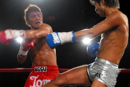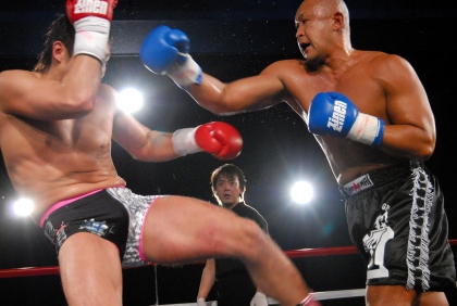 第9試合 R.O.Cセレクションマッチ 70kg契約 3分3R(延長1R) ○日菜太(湘南格闘クラブ/R.I.S.E. DEAD OR ALIVE TOURNAMENT'07 3位) ×水谷秀樹(スクランブル渋谷/R.I.S.E. FLASH to CRUSH TOURNAMENT'06 王者) 判定3-0 (30-29/30-28/30-28)