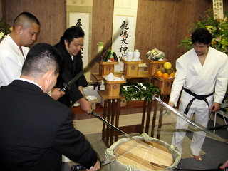 ▼ (7/30 up) 佐山聡氏の掣圏真陰流の本部道場「興義館」の道場開きが29日行われた。佐山総監は「何が日本で一番大切か発信できる場にしたい」、渡部優一館長は「日本人が忘れた義を取り戻すことが目標」と挨拶した。 道場は米沢藩の藩校・興譲館がモデル。元修斗レフェリーで、現在掣圏真陰流のレフェリーを務める小方康至氏が命名したという。修斗の浦田昇コミッショナーや、プロレスラーの4代目タイガーマスクも出席。日本刀で鏡開きが行われ、藤原ジムの藤原敏男会長が乾杯の音頭を取った。 桜木裕司師範と瓜田幸造師範代はスーツ型道衣の姿で演武を披露。掣圏、武士道空手といった実戦的な技を学ぶクラスのほか、士禅クラスやヒプノセラピー(催眠療法)といった精神性の高いメニューも用意されている。