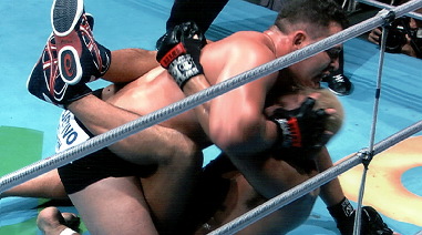 ▼パンクラスの尾崎允実社長は5日(金)、東京・BS朝日にて記者会見を開き、マルセロ・タイガーのパンクラス永久追放を宣言した。タイガーは9.30横浜文化体育館大会での初代ヘビー級王座決定トーナメント準決勝で高橋義生の左目に親指を入れる反則を2度に渡り行い失格負けとなった。会見ではBSデジタルの精彩な映像で反則の瞬間を実証(左写真は一度目、下写真は二度目のサミング。BS朝日提供)。廣戸審判部長は「指が入ってそのままホールドし続けるということは、意図的と判断をせざるを得ない」と説明し、尾崎社長も「プロスポーツ競技としてフェアプレイを重視してきたパンクラスを完全否定するもの。断じて許してはいけない」と怒りを示し、パンクラスからの永久追放を決めた。正式にはタイガーの異議申立ての文書を受けて協議ののちに裁定が下る。永久追放処分は93年11月8日の神戸大会で船木誠勝に意図的に反則の肘打ちやパンチを放ったキース・ベーゼムス以来となる。 なお高橋の病状については3日(水)に尾崎社長が高橋に会った時点では、左目は白目も黒目も内出血のため真っ赤で、視力はあるが完全ではなかったという。正確な検査をするためには多少内出血が引いた状態でないと検査ができず、内出血が引いて検査次第詳細が発表される。5日時点での病名は眼底打撲と眼球内の内出血となっている。 (井原芳徳)