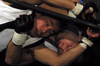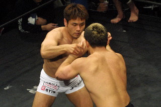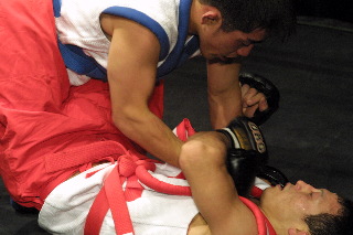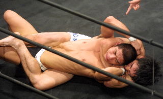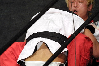 しかし2Rに入ると試合の流れが徐々に門脇に傾き、バックを制してスリーパーでキャッチを奪う。絶体絶命のピンチの所だが、師匠の山本喧一のアドバイスを受け、奇跡の脱出。だが門脇が執拗に同じ技を狙い、今度は逃げ切ることができなかった。
