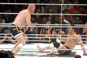 「またも恐怖の一撃、プロレスラーを撃墜」 セミファイナル 3分5R ×永田裕志(新日本プロレス) ○ミルコ・クロコップ(クロ・コップスクワットジム) 1R 0'21" TKO(レフリーストップ)