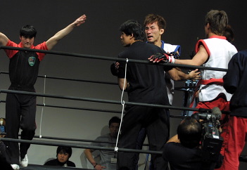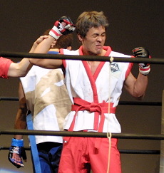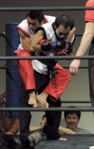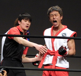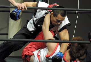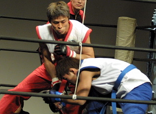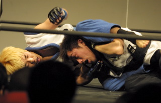 禅道会の選手にとって道衣着用の総合ルールは慣れた物。上になっても下になっても道衣を使ってうまく佐藤をコントロールした熊谷が判定勝ち。