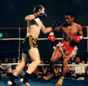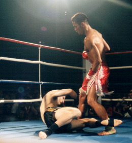 大歓声の中、両選手が登場する。大舞台を任された大宮司は緊張した面持ちだ。対するラドニッキはオーストラリア出身の25歳。94年にキックボクシングを始め4試合ほどこなしたが98年から休業。だが今年に入って練習を再開し、復帰戦ではクリス・ホワイト(当初大宮司と対戦予定だった選手)とのオーストラリア王者戦にノックアウト負けしたが、西オーストラリアのタイトルを受け取ることができたという。別の顔はヘビーメタルのバンドのギタリストで、いくつかの音楽雑誌でライターの仕事もしているという。今回は初めての海外戦で直前まで緊張していたというが、ミュージシャン魂がクラブで発火したのか? リングに上がるとそれも吹き飛んだとのこと。試合が始まっていきなり回転の速いパンチと膝でラッシュを仕掛ける。しかし大宮司は冷静にディフェンスし鋭いローキックで反撃。目前で繰り広げられるリアルファイトに、超満員の観衆から溜め息が漏れる。場内からは「殺せ!」という怒号も響く。次第に大宮司の優勢になり、パンチで続けざまにダウンを奪い、ラドニッキは鼻血を出す。そして2R、2度目のダウンを奪った所でラドニッキが立ち上がれず試合は終了。大宮司は観衆の期待どおりの結果を残した。