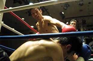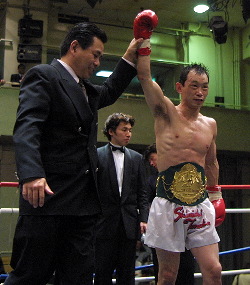吉岡が3、5Rのローブローでそれぞれ注意1ずつ宣せられる。4Rには田中がボクシング仕込みのフックを当て続け攻勢だった。田中は4度目のタイトル挑戦でようやく王座奪取。ボクシングとキックボクシングの両方でタイトルを取ったのは田中が初めてとのこと。