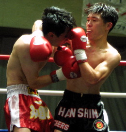 第9試合 NKBトーナメント予選 フェザー級/5回戦 NJKFフェザー級1位 日本フェザー級 楠本勝也(東京北星) 対 神谷秀明(ピコイ錦) 勝者:楠本勝也 KO 1R1分43秒