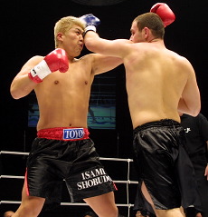 ヴィアチェスラブがパンチを振るって積極的に出るが、身長で大きく上回る中村の方がむしろインサイドから軽いカウンターを当てて、このルールへの対応の差を見せる。だがヴィアチェスラブもパンチを出し続け、中村が押される場面も。終盤になると、中村がヴィアチェスラブに再三首相撲からの膝蹴りを仕掛け、0-2の辛勝。