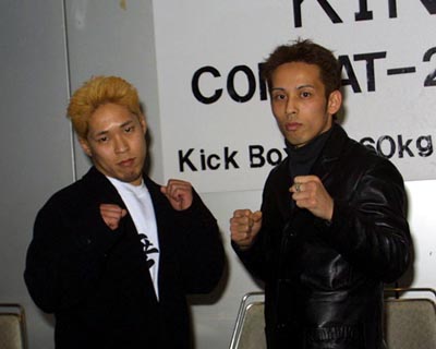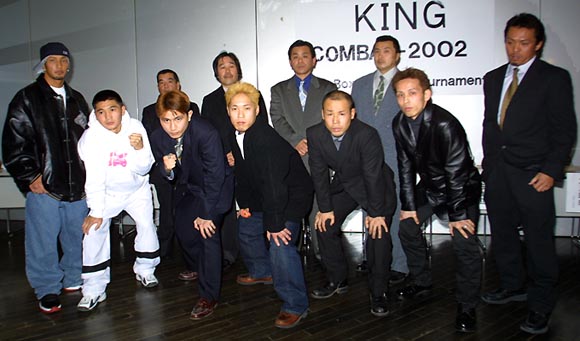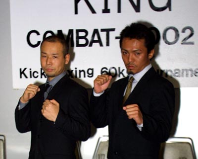 ================================================== マーシャルアーツ日本キックボクシング連盟 "KING" COMBAT-2002 Kick Boxing 60kg tournament 2002年3月30日(土)東京・後楽園ホール ================================================== MA3月大会で、MA、全日本、J-NET、シュートボクシングの4団体とフリー系ジムのトップ選手が集った60キロ以下のワンデー・トーナメント「COMBAT-2002」が開催されることになり、この日北沢タウンホールで参加選手出席の記者会見が行われた。 MAは1昨年3月20日と5月26日に行われた55キロ以下トーナメント「COMBAT-2000」を開催しており、ラビット関が優勝している。この時は3月大会で1回戦、5月大会で準決勝、決勝と2大会で行われたが、今回は「各団体のトップ選手が参加するので、スケジュールを考慮して」1日で一気に決勝まで行われることになった。 組み合わせは公開抽選の形で行われ、以下のように決定した。第1試合と第2試合の勝者、第3試合と第4試合の勝者がそれぞれ準決勝で対戦する。 COMBAT-2000の時は山口元気が負傷で棄権、決勝が行われずやや消化不良だっただけに、より過酷となったワンデー・トーナメントでは選手の怪我が気になるが、どの組み合わせもファン垂涎の黄金カードばかり。主催者するMAの山木敏弘理事長は「60キロ以下というのは日本人の最も層の厚いクラス。優勝者にはラジャの現役ランカーと戦う権利を与える。各団体の60キロ以下のトップ選手が集ったこのトーナメントに優勝した選手が日本一にふさわしい。意地とプライドをかけた、壮絶なバトルに期待したい」と語った。