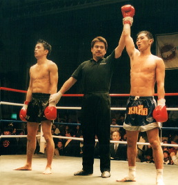 酒井がカウンターの右でファーストダウンを奪う。さらにパンチの連打で二度目のダウンを奪い、最後はコーナーに詰めてパンチの連打でとどめを刺した。酒井はコーナーポストからのバック転で勝利の喜びをあらわした。