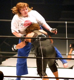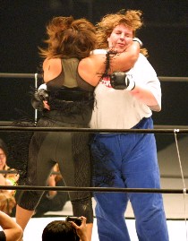 井上はプロレス技のラリアットを繰り出すなど突進ファイトを続けるが、グンダレンコの150キロの巨体に為す術なし。苛立ったのかヘッドロックをかけるグンダレンコの腕に噛み付くという暴挙に出て、イエローカードを出される。その直後スタンドに戻るが軽々と倒され袈裟固めにタップアウト。