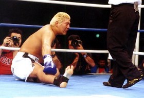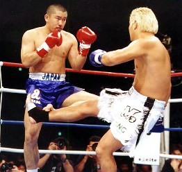 左右のフックを顔面に集める天田が序盤からラッシュを仕掛けていく。ローで牽制しながら距離を測る宮本だが、天田は落ち着いてこれをカットする成長を見せた。左ジャブから右フックが入ったとたん、マットに崩れ落ちた宮本。だがパンチが効いたのではなく右スネを押さえている。自らハイを打ったとき、天田のガードの腕で骨折した模様。2回戦進出を決めた天田は「これで地方予選突破ですわ」と余裕のコメント。