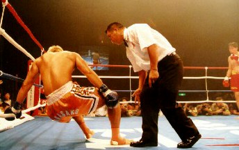 2R終了のゴングの直後安虎のパンチが中迫の顔面に命中しダウン。ダメージが尾を引いた中迫は3R早々安虎のラッシュに倒れ、セコンドがタオル投入。
