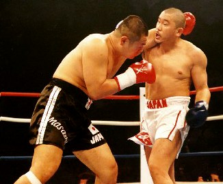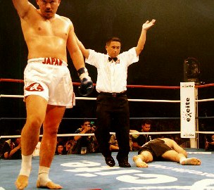 天田のパンチの連打に鈴木は耐え続けるが、最後はレフェリーストップ