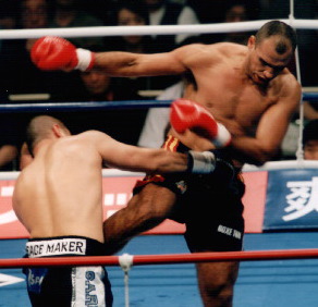プラハ予選を制したマイヤーは2mを越す長身に弁髪が印象的な選手。だがバンナの前に立つと線の細さが際立つ。バンナは序盤は様子を伺うかのようにあえて攻め込まず。だがニラみ付けてプレッシャーをかけるだけでマイヤーは腰が引けた様子で後ずさりする。相手を見切ったバンナは左ストレートをヒット。さらに肘打ちスレスレのパンチで相手をひるませる。ロープ際に追い詰められたマイヤーは両腕をガードしたまま静止し戦意喪失のような状態。あとはバンナが左ミドルと左フックを叩き込みKO勝ち。危なげなく一回戦を突破した。