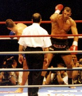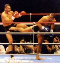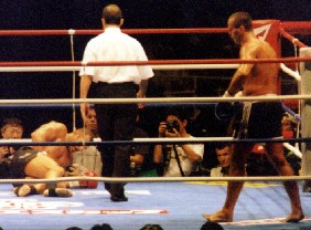 何せあのワイド・スクリーンで満員の場内がどよめいた紛う事なきローブローに対してさえ「サムは脚へのダメージを誤魔化すのにローブローを利用したんじゃないのか」という問題発言まで繰り出す始末。先の5〜6ポイント優勢発言にしてもとても冷静な判断から出た発言とは考えにくい。やはりこの試合結果はグレコの肉体同様に、レコの精神にとって苦痛に満ちたものだったのに違いない。レコの勝ちに対する執念、ハートの強さはつとに有名だ。名古屋での予選トーナメントでも初戦で左脚に激しい裂傷を負い、その後の試合では蹴りを出すたびにグルグル巻きにしたテーピングの下から血を溢れさせながら、結局優勝戦までポーカーフェースで闘い続けた男である。「このジャッジングには公式に抗議する形を取る」と息巻くレコだが、こちらはだからといってK-1撤退ということは考えていないようで、「また日本に来て、今度はもっとフェアな形で日本のファンに見て貰いたい。」と語っているから、この点は一安心。