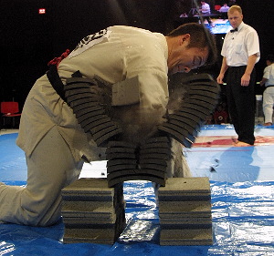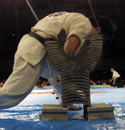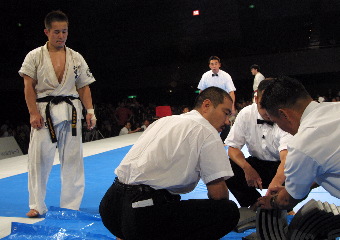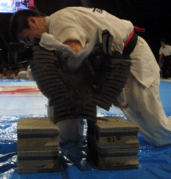 本戦、延長戦、再延長戦と闘ったあとの瓦割りは、演武とは違う。肉体的、精神的な疲労を越えて自分との戦いに入るのだから、より強い精神力と集中力が要求される。今大会の試し割りをまとめてみた。