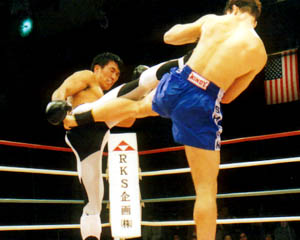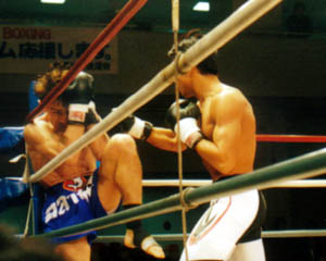 ローからワンツーと繋げて、緒形の攻撃は滑り出した。カルジェビックは軽いながらもパンチを返す。これをきっちりガードしながら、左ジャブから右ストレートの攻撃で緒形が主導権を握る。カルジェビックは守りつつ、時折強いボディーストレートを叩きこむ。緒形のガードは上がっているため、これが有効となった。緒形の動きはそう悪くはないが、やはりブランクの影響か、爆発を予感させる勢いは感じられない。しかし、1R終了前にはお返しに左右のボディへの連打で緒形がダウンを奪う。