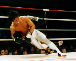 3R、反り投げのような形で緒形はシュートポイントを奪う。そしてワンツーでダウン。判定なら文句なしの勝ちが見えてきた。残り30秒になったところで緒形がパンチで前進するが、これはがっちりとガードされた。ミドルで反撃を見せたところで、終了のゴングが鳴った。判定結果が緒形の勝利を告げる。