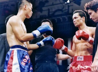 前回の試合では「パンチで倒すことを意識して」得意の肘をあえて封印。しかしパンチにこだわりすぎて攻撃のバランスを欠き、チグハグな攻防に終始してまった。その為か今回のパンフで早くも「肘の解禁」を宣言。これは肘で倒すというよりも、攻撃のトータルバランスを考えての事だと思われた。