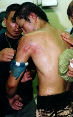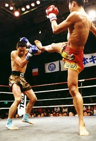 「日本キック界のリビングレジェンド」「肉体言語」と異名をとる新妻聡が1年振りに復活。だがタイの重量級では現在最強クラスと言われているノッパデーソンを前に為す術が無かった。圧倒的な破壊力とスピードのある蹴りが放たれる度に客席からは溜め息が響く。新妻の右脇、肩が徐々に腫れ上がっていくのが遠くからでもよくわかるほどだ。