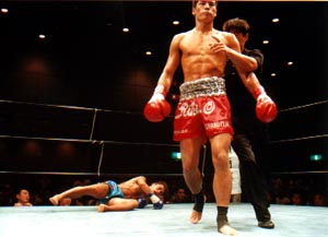 3R、小野寺が決めに出る。ボディを多用したパンチコンビネーションを自由自在にあて江森を追いつめる。コーナーでパンチと肘を正確かつ冷徹に浴びせ、立て続けにダウンを二つ奪ってみせる。江森のドクターチェック(肘で目を負傷!)を挟み、好調な証拠のソバットもヒットさせると、一気にロープ際でパンチの連打。ガードをするしかなく立ちつくす江森の様子をみてとったレフェリーが試合のストップを要請、救い出した。
