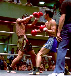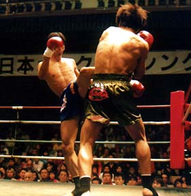サウスポーからミドルを強打する中西に、鋭いワンツーで対抗する三苫。中西テンカオで前に出て首相撲からの膝蹴り、三苫はフットワークと細かいパンチでこれを逃れる。
