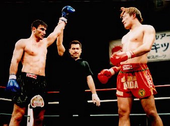 現在スタイル改造中の内田、従来のパンチ中心のスタイルから若干変えて蹴りを組み入れたコンビネーションを試合開始早々から見せる。アフメドフは元々ボクシングをやっていたという選手で、強烈なフックを叩き込む。