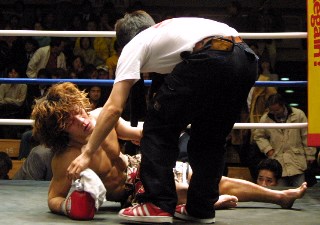 リトルライオンと異名を取る瀬尾、突貫ファイトで見せたが、終盤スタミナ切れが激しく、試合終了と同時にマットに倒れこんだ。