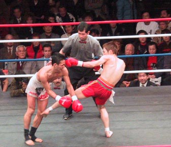 予想通りワンツーローの連打で前進する山本に川津は落ち着いた表情で下がりながらのカウンターで対処。序盤はこれが巧くヒットしていたが山本の変わる事のない前進に徐々に押され気味になっていく。そして山本のローが効きだし、3R残り1分を切ったところで川津続けざまにローでダウン。そのダメージの具合から一気に山本が試合を終わらせるかに思われたが川津ゴングに救われる。