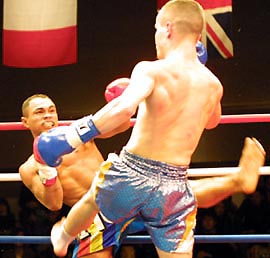第1試合 ライトヘビー級/3回戦 (右下写真は西田)