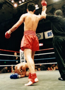 5R、米田はロー、ミドルを的確に当てる。対する庵谷も後回し蹴りも見せるが不発。アッパーの精度も下がってきた。だが両者の休まない積極的な攻撃に客席はヒートアップする一方。両陣営の大コールはもちろん、全ての観客から歓声が湧く。休憩前の一戦にも関らず(トリプルセミファイナルと銘打たれてはいるのだが)、まるでメインイベントを終えた後のような充実感が、ゴング後の会場に余韻として残った。