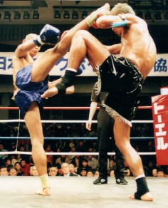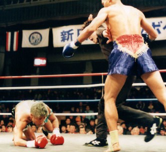 ソンコムはスキンヘッドで体形からもタイ人版・武田といった風貌。石井より10センチほど背が低く、同一階級の選手とは思えない雰囲気だが、石井も「見えなかった」というほど伸びとスピードのある右ハイで1Rからいきなりダウンを奪う。ソンコムはローも効果的に使う。石井も右ローを的確に打ち、ソンコムの蹴りを封じ込めようと試みる。3Rにはソンコムがローにバランスを崩す場面も。だが4Rになるとソンコムが勢いを取り戻す。左ミドルの連打など、攻撃のリズムが速まってきた。石井はロー攻撃を徹底するが、単発に終始しなかなかソンコムを突き崩せない。結局判定は大差でソンコムに軍配。昨年12月のタイ興行に続きムエタイ越えに失敗した石井は「自分の距離にさせてもらえなかった」とタイ人の巧さに完敗を認めた。